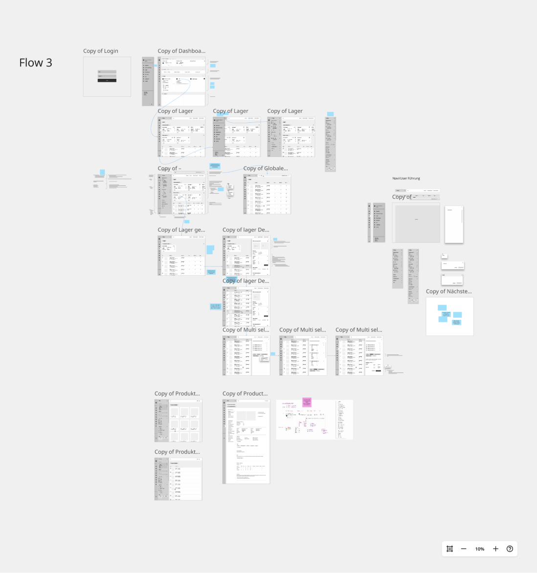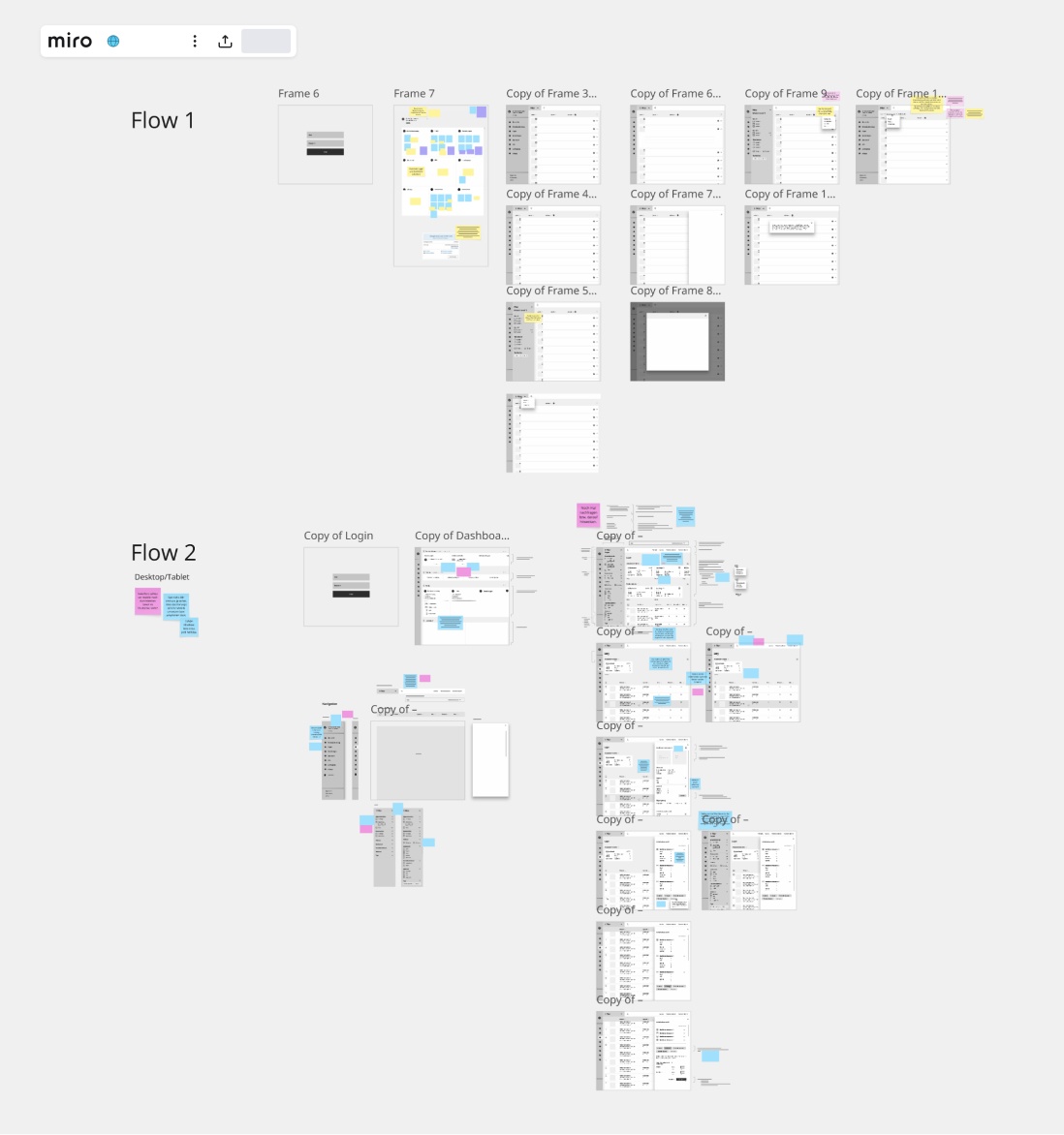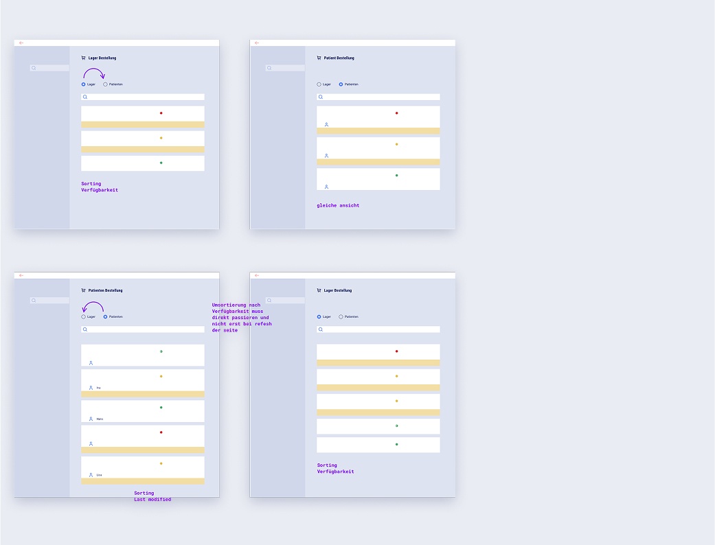 Um schnell in belastbare Produktentscheidungen zu kommen, startete die Arbeit mit einem User Research zum Praxisalltag von MPAs und Ärzt:innen. Die Ergebnisse wurden als Task Map in Miro visualisiert und anschließend in frühe Wireframes übersetzt, die als Diskussionsgrundlage für Navigation, Struktur und Kernflows dienten. Durch kontinuierliche Co-Creation mit Stakeholdern konnten Annahmen früh validiert und neue Ideen schnell bewertet werden.